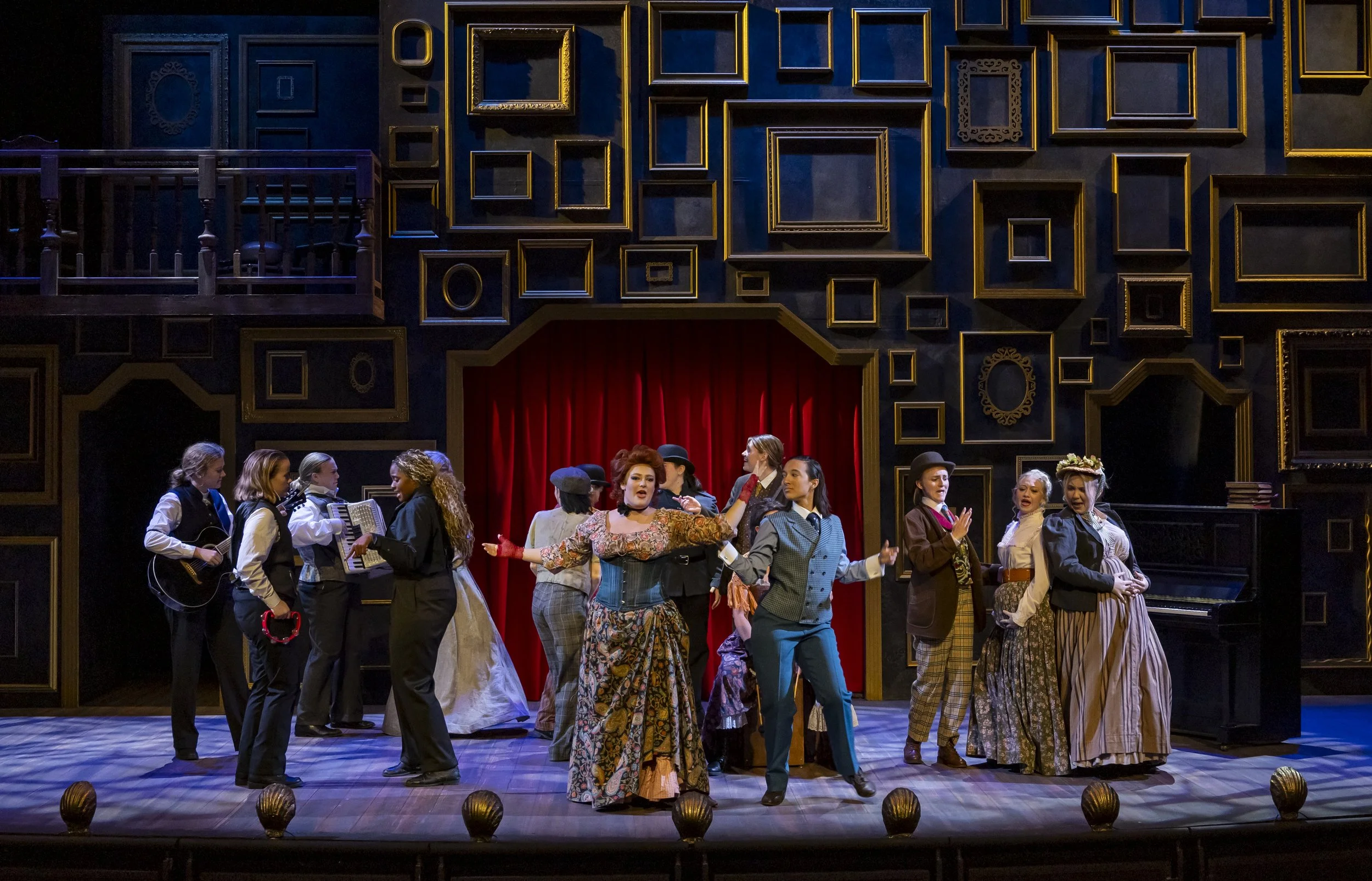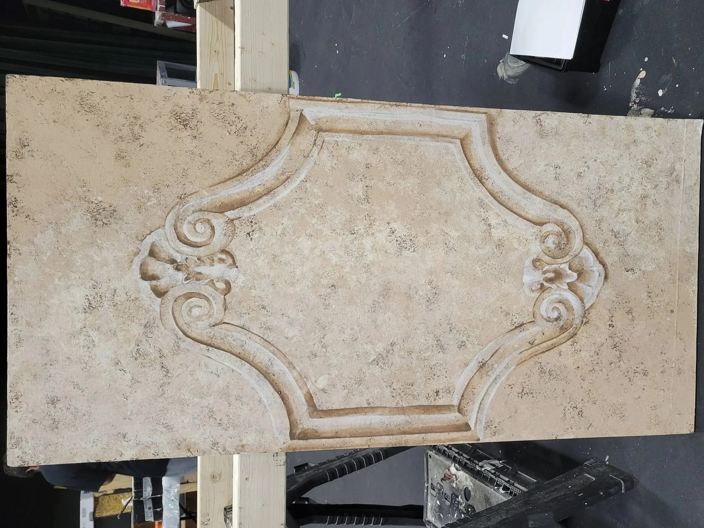 These techniques were used to replicate a variety of surfaces commonly found in theatrical environments, including wood grains, brickwork, river rocks, dimensional shapes, and aged ghost signs.