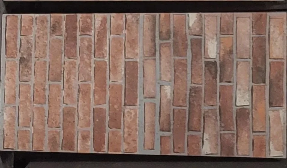 Brick textures were developed using both freehand painting and stenciling. Techniques included sponging for surface variation, dry brushing and wet brushing for highlights and shadows, and subtle splatter to add realism.