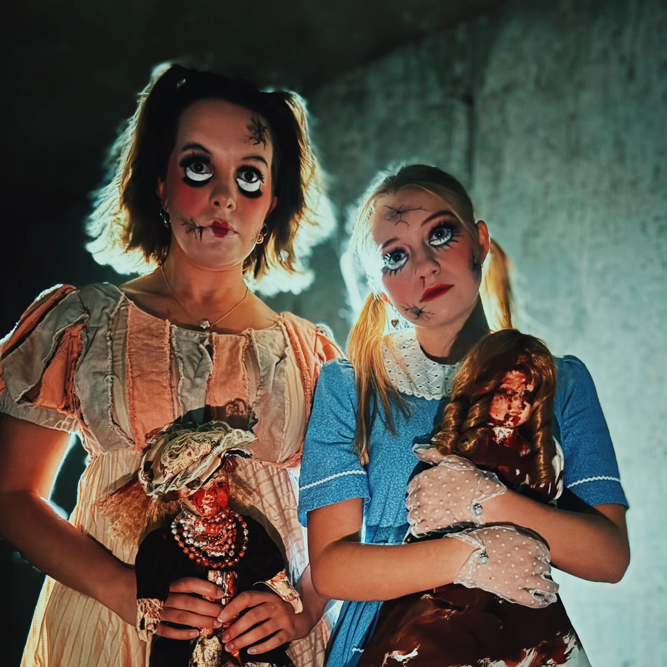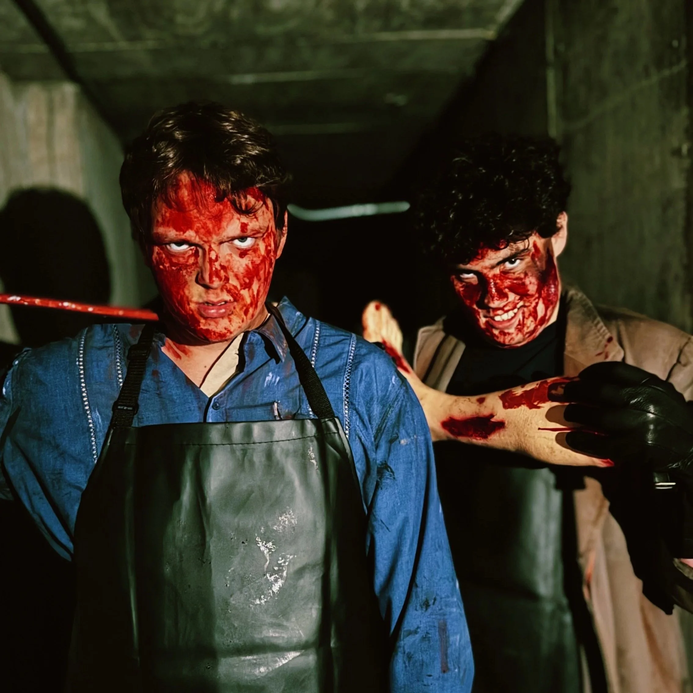 Ghost signage was created using a combination of freehand painting and stenciling. Paint mixing, dry brushing, sponging rust effects, and splatter techniques were used to achieve an aged, weathered appearance.